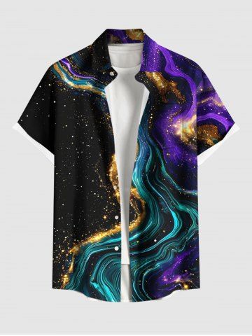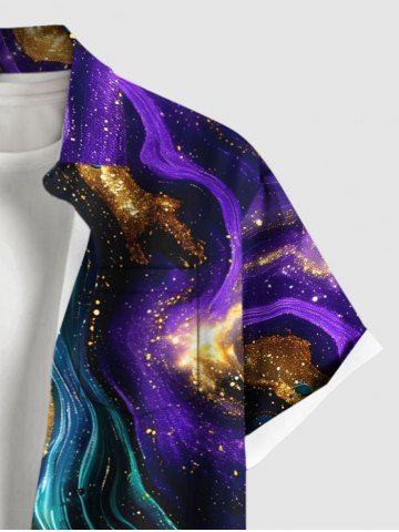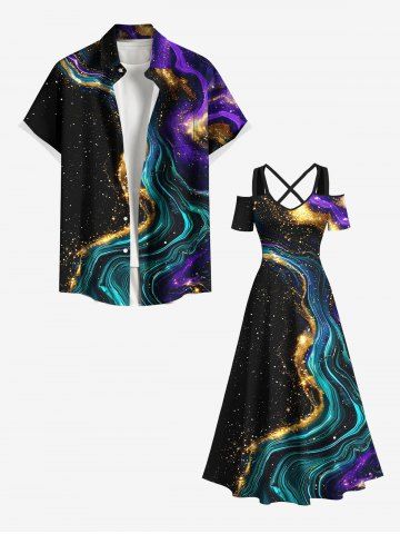 Matching Couple Outfits > Glitter River Galaxy Print Plus Size Matching Hawaii Beach Outfit For Couples