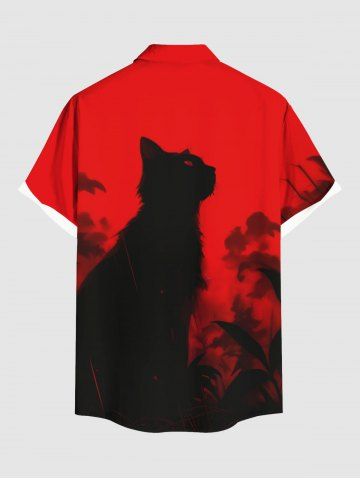 Ink Painting Cat Print Plus Size Matching Outfit For Couples - Red