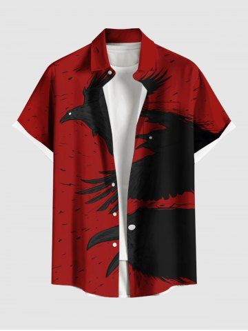 Ink Painting Crow Print Plus Size Matching Outfit For Couples - Red
