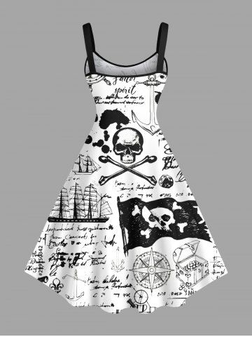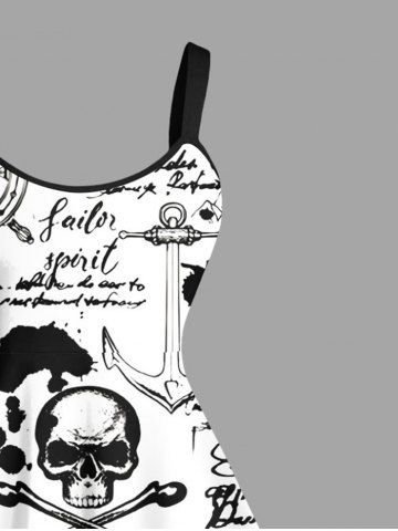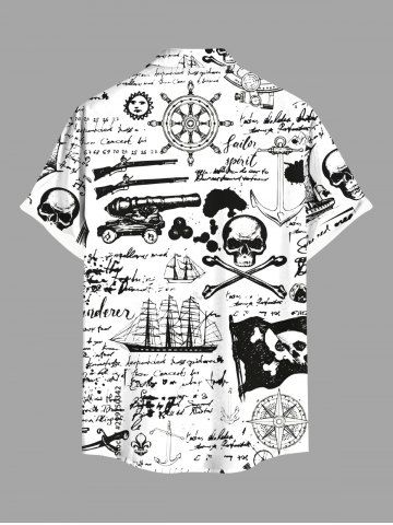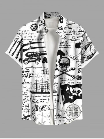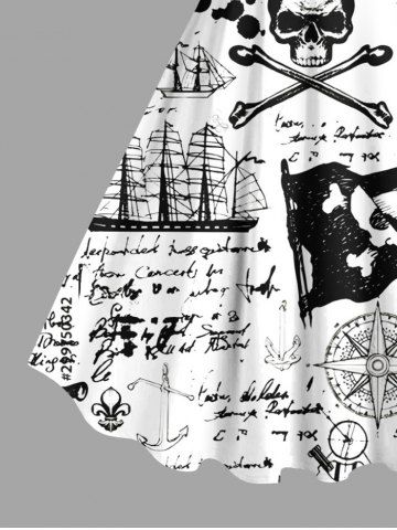 Ink Painting Skull Compass Rudder Letter Sailboat Cruise Print Plus Size Matching Hawaii Beach Outfit For Couples - White