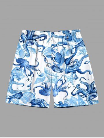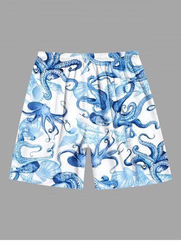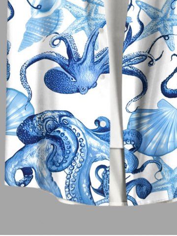 Octopus Shell Starfish Conch Cruise Print Plus Size Matching Outfit For Couples - Sky Blue