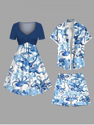 Matching Couple Outfits > Octopus Shell Starfish Conch Cruise Print Plus Size Matching Outfit For Couples