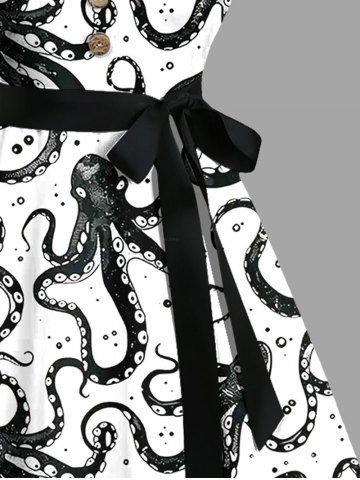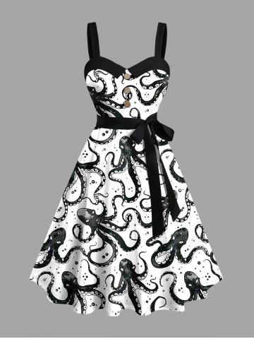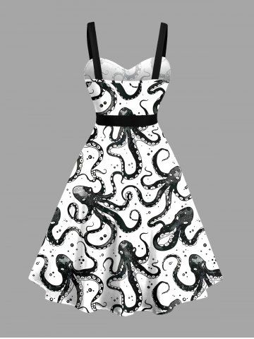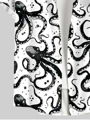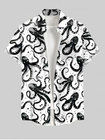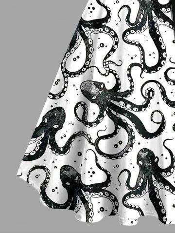 Octopus Two Tone Print Plus Size Matching Beach Outfit For Couples - White