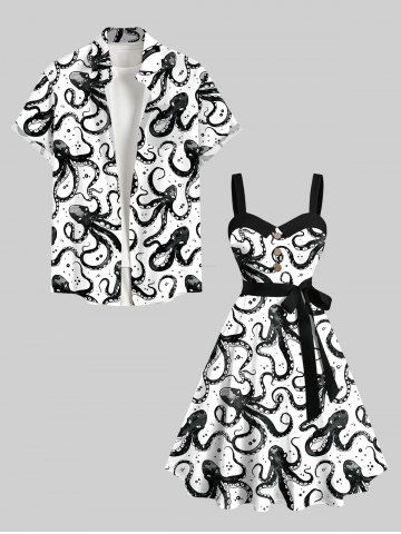 Matching Couple Outfits > Octopus Two Tone Print Plus Size Matching Beach Outfit For Couples