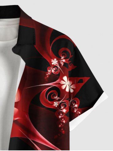 Ombre Floral Ribbon Print Plus Size Matching Outfit For Couples - Deep Red