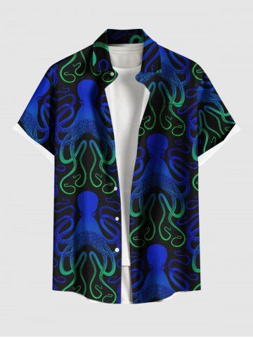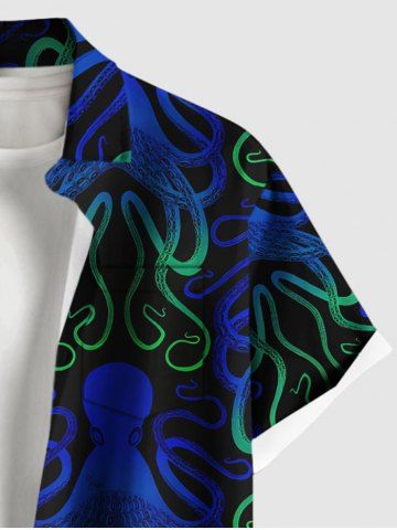 Ombre Octopus Print Plus Size Matching Beach Outfit For Couples - Black