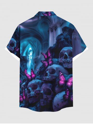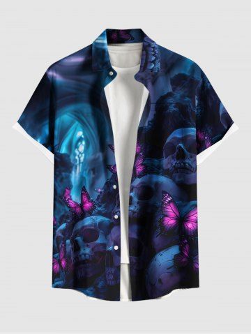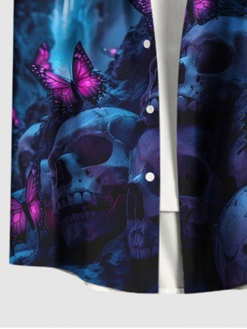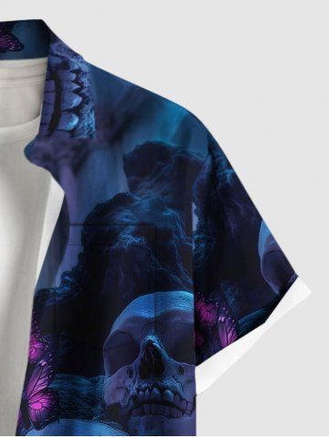 Ombre Skull Butterfly Print Plus Size Matching Outfit For Couples - Navy Blue