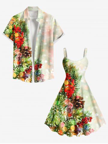 Matching Couple Outfits > Party New Years Eve Fruit Pine Cones Leaf Print Plus Size Matching Outfit For Couples
