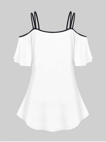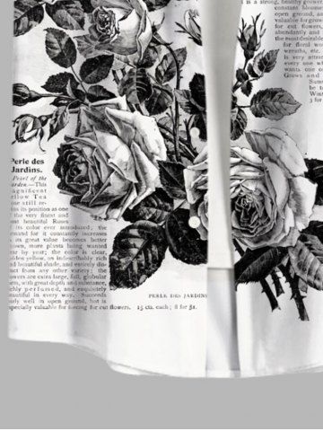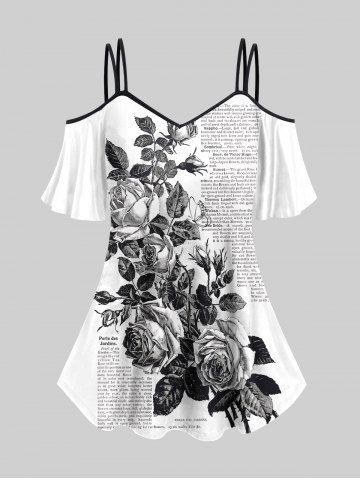 h*****l5Plus Size Cold Shoulder Rose Flower Leaf Newspapaer Letters Print Cami T-shirtColor: WHITE Size: 4XUnless someone is up close and personal they can't read the wording, but it's very beautiful. You'll love it especially if you are a person who loves novel type work.