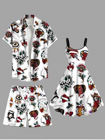 Matching Couple Outfits > Skull Flower Heart Snake Cherry Print Plus Size Matching Outfit For Couples