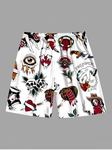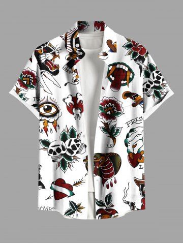 Skull Flower Heart Snake Cherry Print Plus Size Matching Outfit For Couples - White