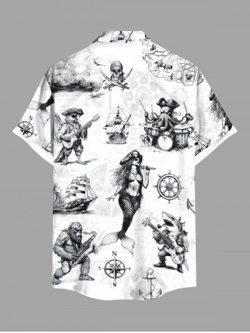 Skull Pirate Mermaid Ship Rudder Cruise Print Plus Size Matching Hawaii Beach Outfit For Couples - White