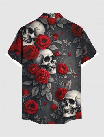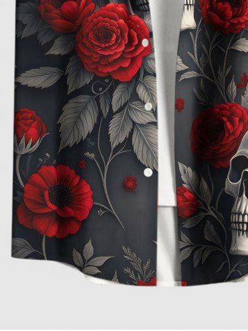 Skull Rose Flower Leaf Branch Print Plus Size Matching Outfit For Couples - Dark Gray
