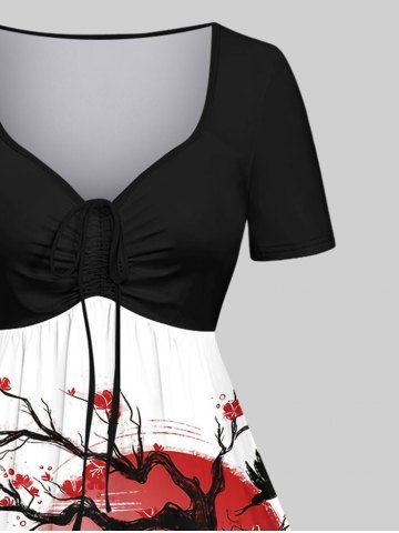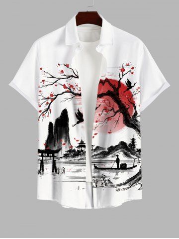 Tree Sun Mountain Ink Painting Print Plus Size Matching Set For Couples - Multi-a