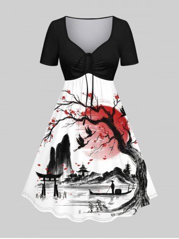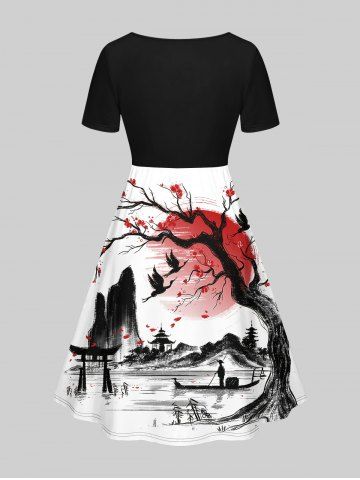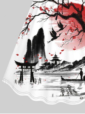 Matching Couple Outfits > Tree Sun Mountain Ink Painting Print Plus Size Matching Set For Couples