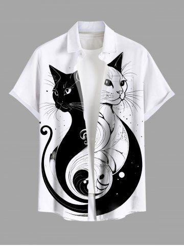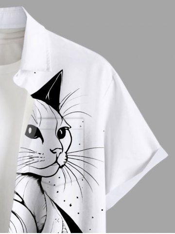 Two Tone Cat Print Plus Size Matching Outfit For Couples - White