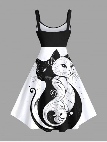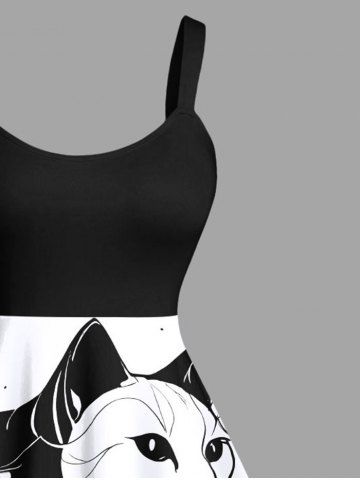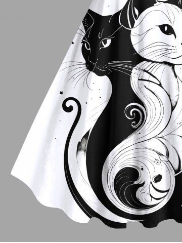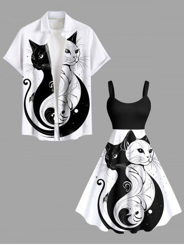 Matching Couple Outfits > Two Tone Cat Print Plus Size Matching Outfit For Couples