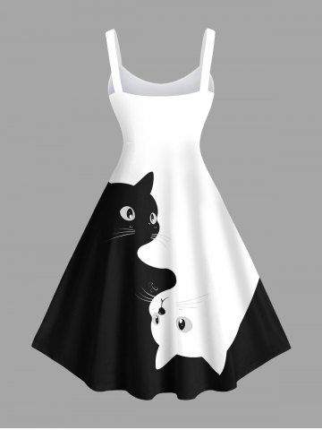 Two Tone Cats Print Plus Size Matching Outfit For Couples - White