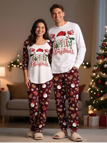Matching Couples Pajamas > Matching Gingerbread Snowflake Christmas Pajamas for Couples Long Sleeve Sleepwear Set
