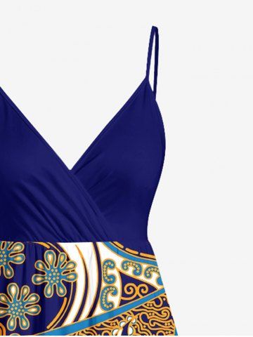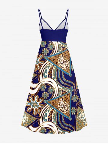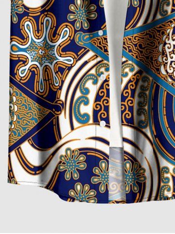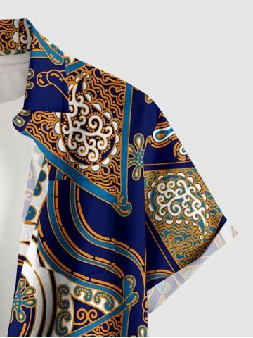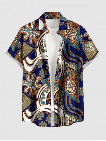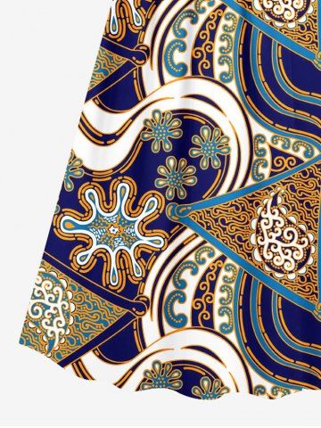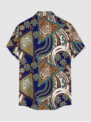 African Printed Matching Couple Outfit Ethnic Geometric Graphic Paisley Hawaiian Set - Navy Blue