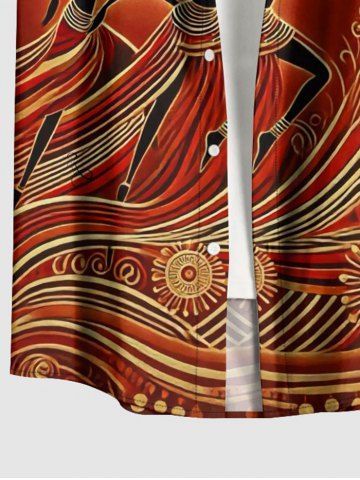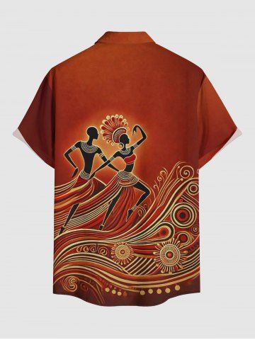 African Printed Matching Couple Outfit Ethnic Pattern Dancer Hawaiian Set - Brown