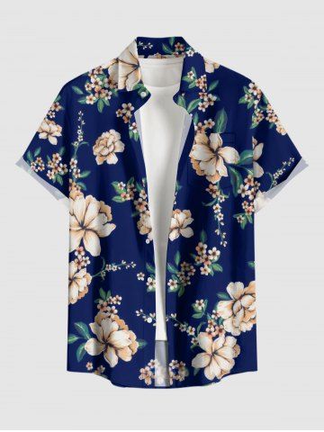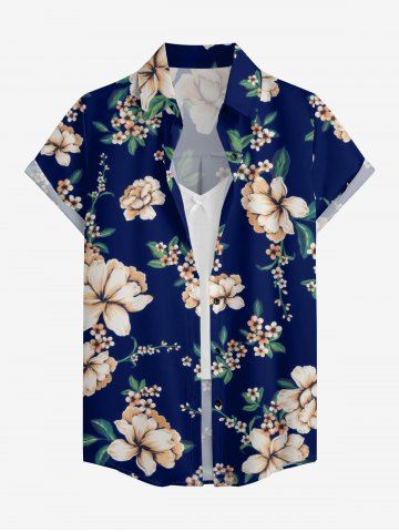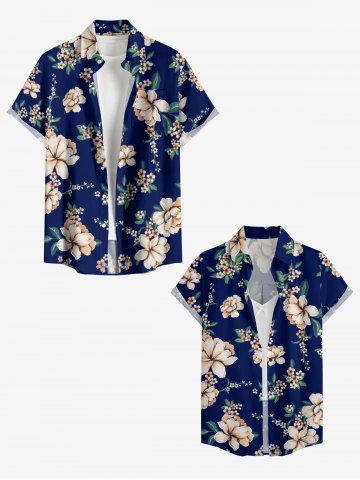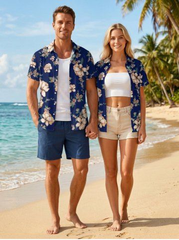 Matching Hawaiian Outfits > Branch Leaf Flower Print Matching Hawaii Beach Outfit For Couples