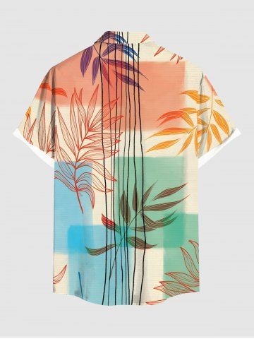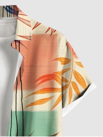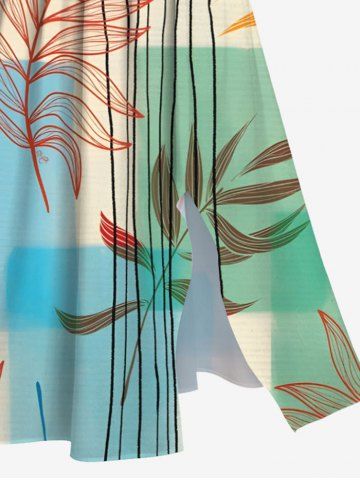 Matching Hawaiian Outfits > Branch Leaf Colorblock Line Print Plus Size Matching Hawaii Beach Outfit For Couples
