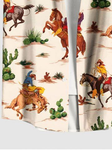 Cactus Horse Knight Print Plus Size Matching Hawaii Beach Outfit For Couples - Light Coffee