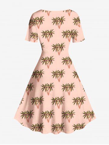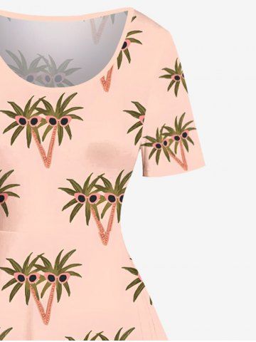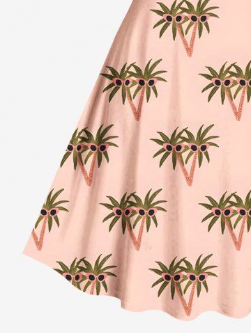 Cartoon Coconut Tree Print Plus Size Matching Hawaii Beach Outfit For Couples - Light Orange