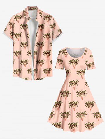 Matching Hawaiian Outfits > Cartoon Coconut Tree Print Plus Size Matching Hawaii Beach Outfit For Couples