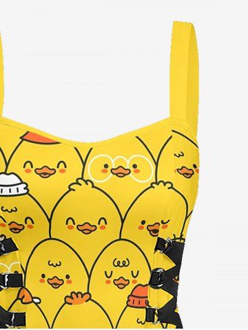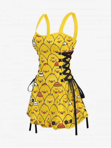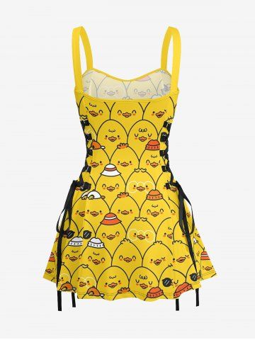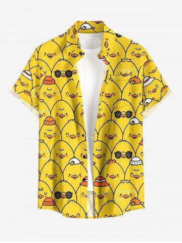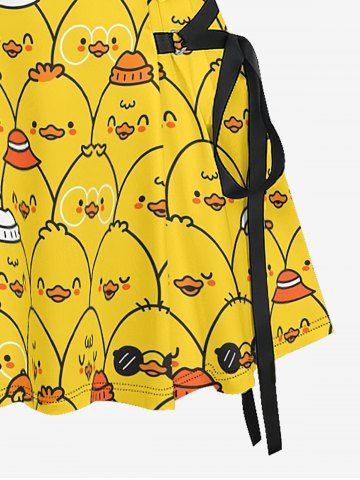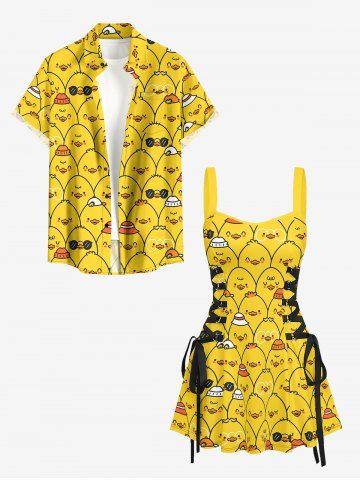 Cartoon Ducks Print Matching Hawaii Beach Outfit For Couples - Golden Brown