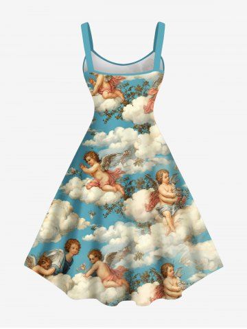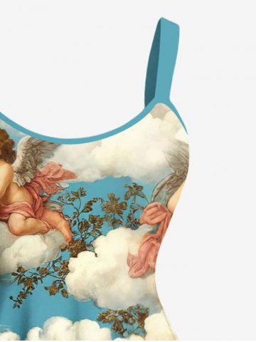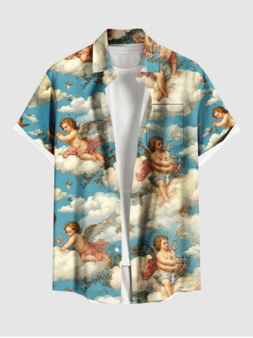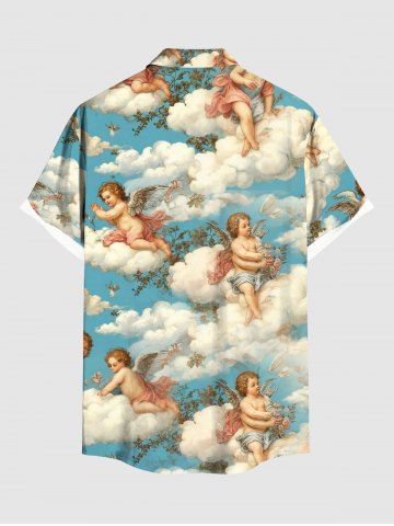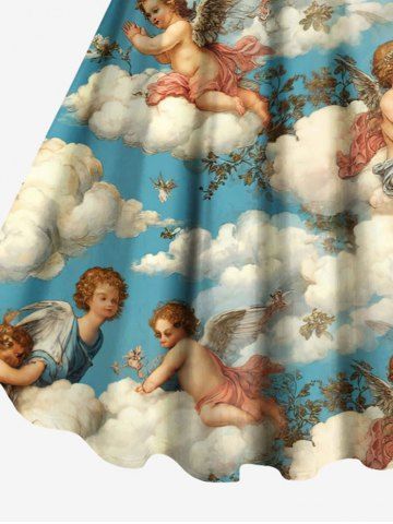 Cloud Sky Cupid Print Plus Size Matching Hawaii Beach Outfit For Couples - Sky Blue