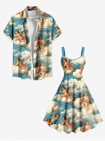 Matching Hawaiian Outfits > Cloud Sky Cupid Print Plus Size Matching Hawaii Beach Outfit For Couples