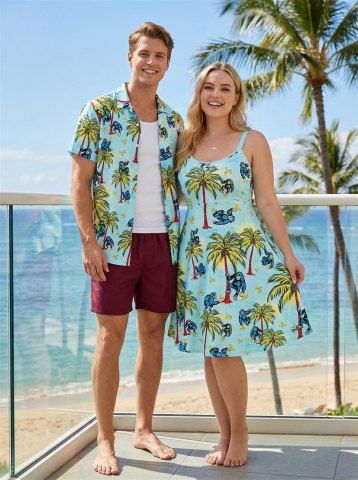 Matching Hawaiian Outfits > Coconut Tree Banana Gorilla Print Plus Size Matching Hawaii Beach Outfit For Couples