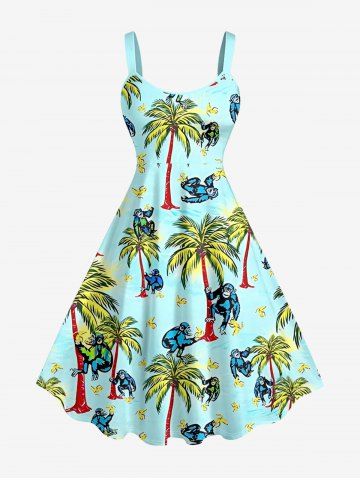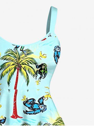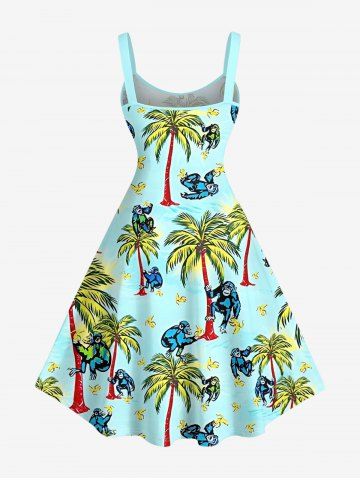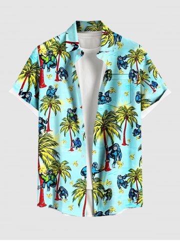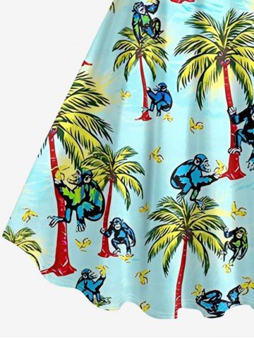 Coconut Tree Banana Gorilla Print Plus Size Matching Hawaii Beach Outfit For Couples - Turquoise