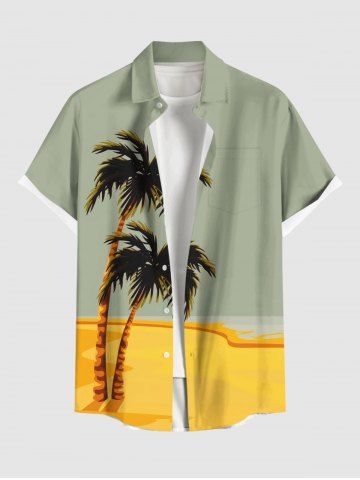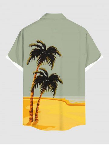Coconut Tree Beach Sea Colorblock Print Plus Size Matching Hawaii Beach Outfit For Couples - Light Green