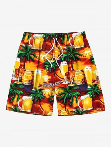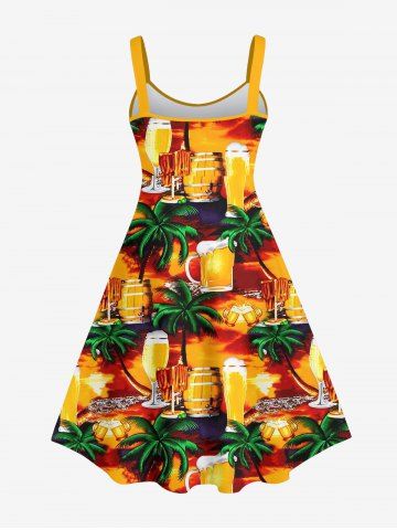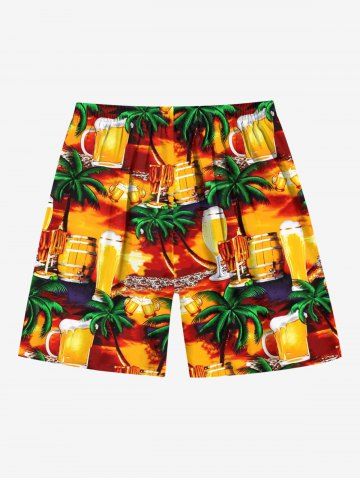 Coconut Tree Beer Mug Barrel Print Plus Size Matching Hawaii Beach Outfit For Couples - Orange