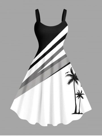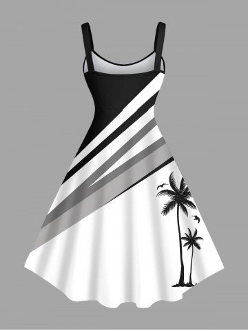 Coconut Tree Bird Colorblock Print Plus Size Matching Hawaii Beach Outfit For Couples - White