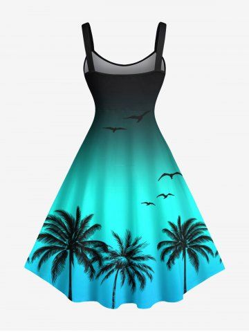 Coconut Tree Bird Ombre Print Plus Size Matching Hawaii Beach Outfit For Couples - Green