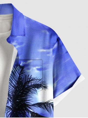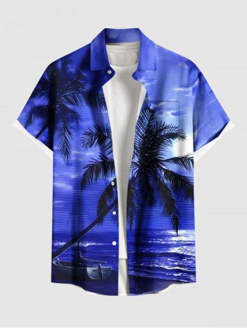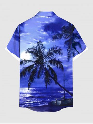 Coconut Tree Boat Seascape Cloud Print Plus Size Matching Hawaii Beach Outfit For Couples - Sky Blue