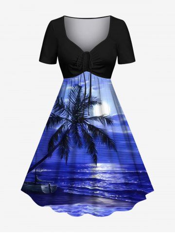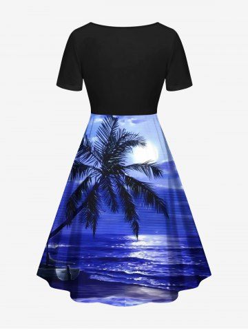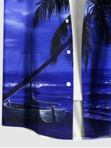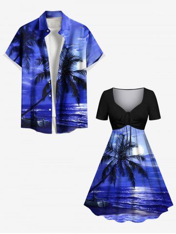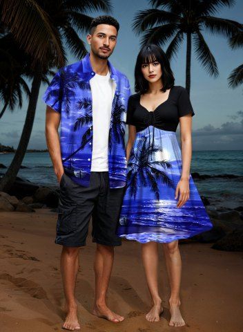 Matching Hawaiian Outfits > Coconut Tree Boat Seascape Cloud Print Plus Size Matching Hawaii Beach Outfit For Couples