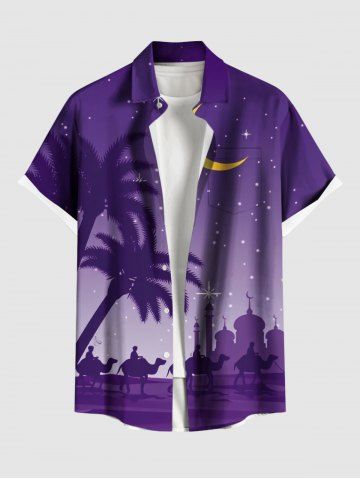 Coconut Tree Camel Moon Star Ombre Galaxy Print Plus Size Matching Hawaii Beach Outfit For Couples - Purple