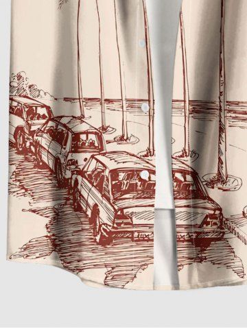 Coconut Tree Cars Print Plus Size Matching Hawaii Beach Outfit For Couples - Beige