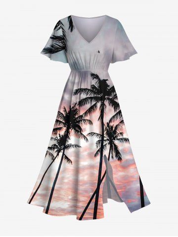 Matching Hawaiian Outfits > Coconut Tree Cloud Ombre Dusk Print Plus Size Matching Hawaii Beach Outfit For Couples