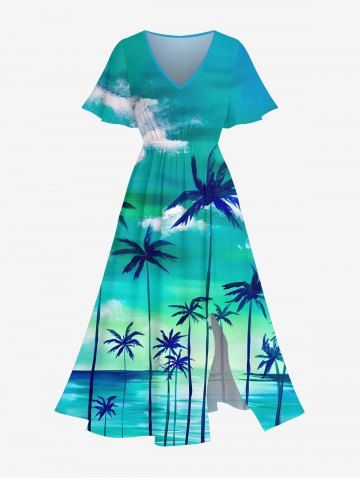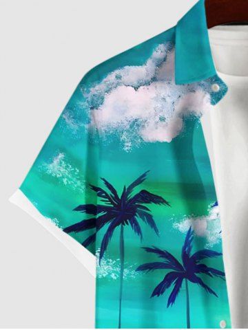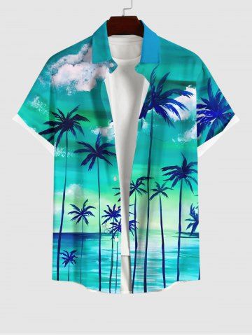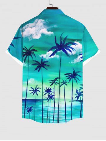 Coconut Tree Cloud Sea Ombre Sky Print Plus Size Matching Hawaii Beach Outfit For Couples - Green
