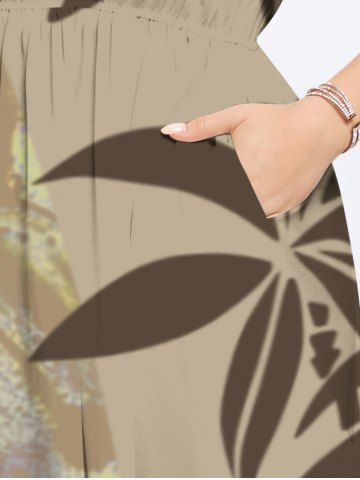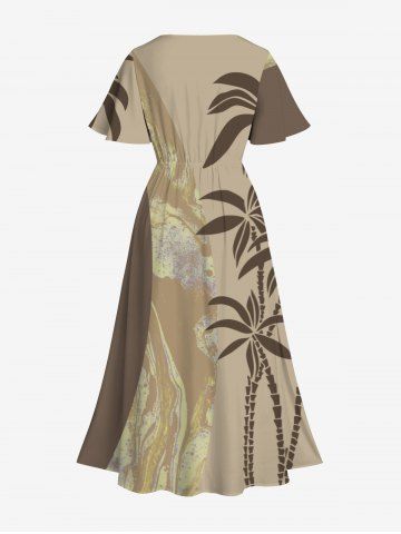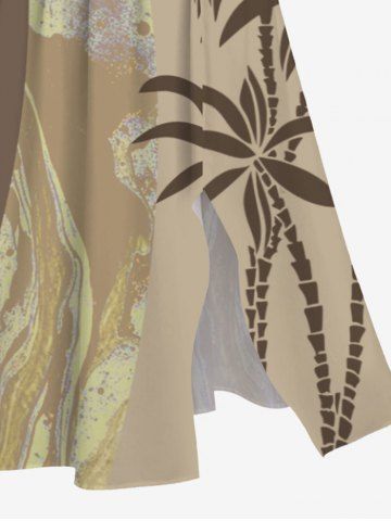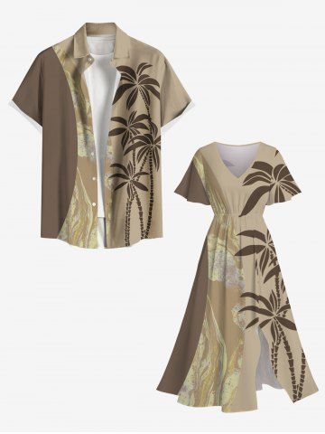 Coconut Tree Colorblock Ocean Current Print Plus Size Matching Hawaii Beach Outfit For Couples - Coffee