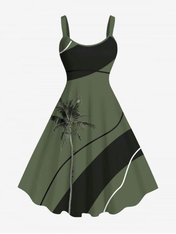 Coconut Tree Colorblock Print Plus Size Matching Hawaii Beach Outfit For Couples - Deep Green
