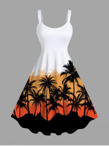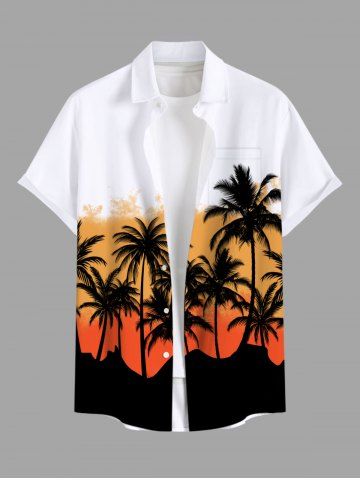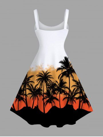 Coconut Tree Colorblock Print Plus Size Matching Hawaii Beach Outfit For Couples - White