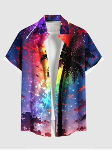 Coconut Tree Colorful Ombre Galaxy Print Plus Size Matching Hawaii Beach Outfit For Couples - Multi-a