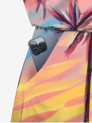 Matching Hawaiian Outfits > Coconut Tree Colorful Sky Moon Star Print Plus Size Matching Hawaii Beach Outfit For Couples
